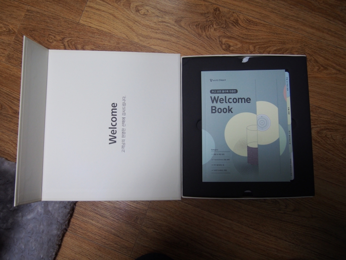 박스를 열면 환영인사와 함께 개통설명과 혜택들이 적혀있는 웰컴북이 눈에 들어옵니다.