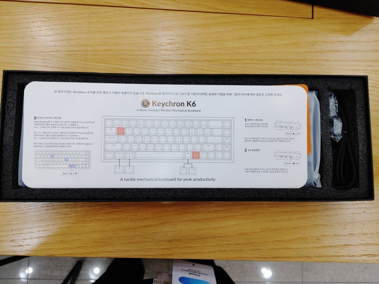 블루투스 키보드를 알아보면서 익숙한 로지텍 제품을 염두에 두고 있었지만 이왕 구매하는거 요새 많이들 쓴다는 기계식 키보드면 좋겠다는 생각에 검색을 하던 중 키크론 K6를 알게 되었고 컴팩트한 사이즈에 RGB 기능까지 있다는 말에 고민하지 않고 결제해버렸다.