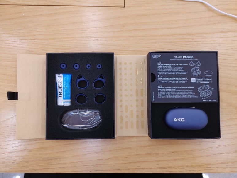오늘 소개할 N400은 '노이즈캔슬링'이 적용된 갤럭시 버즈 플러스라고 봐도 무방하다. 최저가 기준 5만원 정도 차이나는 가격대도 그렇고 버즈 플러스에서 간지러움을 느낀 유저들을 위한 상위 호환형 제품이라고 보면 될 것 같다. 박스 우하단부에는 'A SAMSUNG BRAND'라는 문구를 기재해 AKG가 삼성전자의 브랜드임을 강조하고 있다.