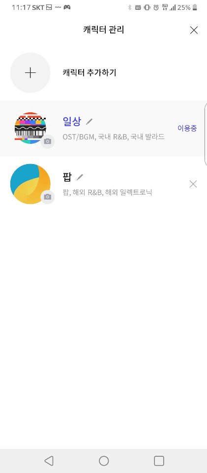 캐릭터라는 기능도 신선합니다. 넷플릭스처럼 하나의 계정에서 최대 3개의 캐릭터를 만들 수 있는데요. 그렇다고 해서 3명이 동시에 음원을 재생할 수 있는 것은 아니고 캐릭터마다 취향대로 음원을 구분해서 관리할 수 있습니다.