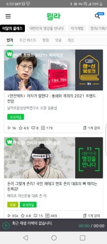 윌라를 둘러보면서 가장 놀랐던 점은 별도로 녹음을 해야하는 오디오북임에도 불구하고 생각했던 이상으로 콘텐츠가 많았다는 점입니다. 클래스는 분야별 전문가 분들이 진행하기 때문에 콘텐츠의 내용도 깊이가 있고 배울 점도 많았습니다. 무엇보다 듣는 콘텐츠이기 때문에 자투리 시간을 활용하기도 좋았구요.