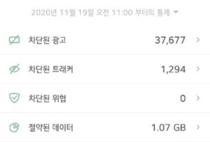 저는 2015년부터 애드가드를 사용했는데요. 정말 성능하나는 확실합니다. 주간 통계를 보면 37,000개의 광고를 차단하여 1GB가 넘는 데이터를 절약해줬습니다.