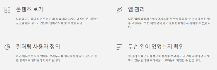 다만 OS 정책에 따라서 기능이 상이한데요. iOS는 사파리 브라우저 내의 광고차단만 가능한데 이는 iOS의 샌드박스 구조 상 어쩔 수 없는 부분입니다. 하지만 상대적으로 개방적인 안드로이드는 웹브라우저와 모든 앱의 광고를 차단할 수 있습니다. 그렇다고해서 앱을 사용하기 위해 루팅을 요구하지도 않구요.
