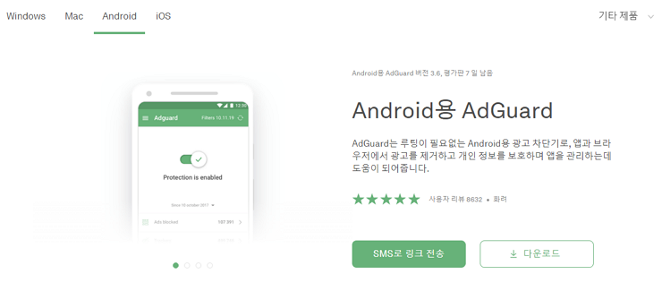 Adguard는 다양한 OS를 지원하고 있습니다. 윈도우, 맥, iOS, 안드로이드를 지원하고 있고 웹브라우저용 확장 프로그램도 출시되어 있습니다.