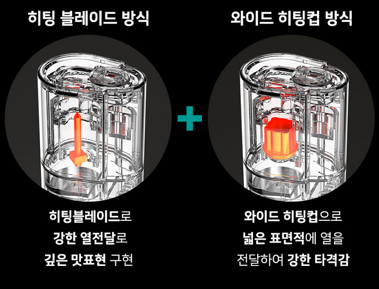 차이코스 듀얼은 듀얼 히팅 방식을 채용했는데요. 중앙의 히팅 블레이드 뿐만 아니라 궐련 주변부까지 가열을 해주기 때문에 담뱃잎을 골고루 쪄주는 효과가 있습니다. 최근 출시된 KT&G의 릴 솔리드 2.0과 비슷한 가열 방식입니다.