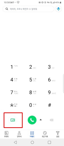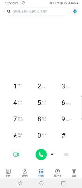 T전화의 메인화면은 키패드 화면이고 설정을 통해 실행 시 마지막으로 종료한 화면을 이어서 볼 수있도록 변경할 수 있습니다.