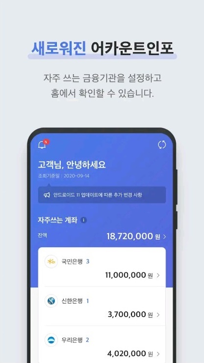 어카운트 인포는 카드포인트 관리 서비스 이외에도 국내 대부분의 금융기관 계좌, 대출 등의 정보를 하나로 모아서 볼 수 있는 유용한 앱입니다. 플레이스토어에 올라온 어카운트 인포 소개 이미지를 함께 첨부하도록 하겠습니다. 도움이 되시길 바라며 다음에도 유용한 정보 가지고 찾아뵙도록 하겠습니다.