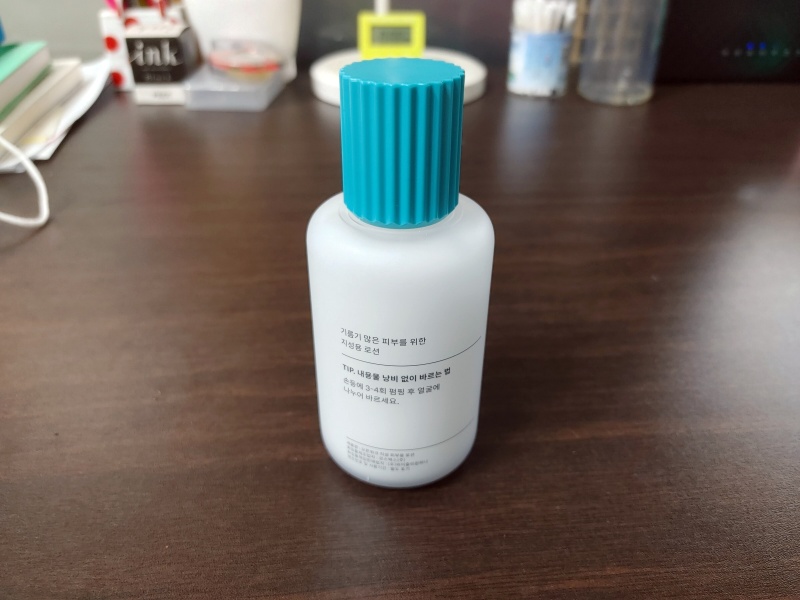 로션 용기는 반투명이라 로션이 얼마나 남았는지 확인할 수 있도록 되어있습니다. 용량은 100ml이며 2개월 정도 사용할 수 있는 분량이라고 합니다. 펌프 방식으로 되어 있어서 사용량 조절하기도 편할 것 같네요. 제가 구매한 지성용 로션은 산뜻하게 발리는 타입이고 유분기가 없어서 부담없이 바를 수 있습니다.