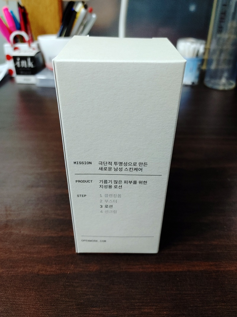 이것저것 사용해보다가 한동안은 우르오스 올인원 스킨로션을 사용했습니다. 굳이 스킨로션을 따로 바를 필요가 없었고 물에 가까운 산뜻한 발림성이 마음에 들었는데요. 사용하던 로션이 거의 떨어져 갈 찰나에 우연히 '이 제품'을 보게 되었습니다. 바로 오늘 소개해드릴 '오픈워크'라는 남성 스킨케어 브랜드입니다.