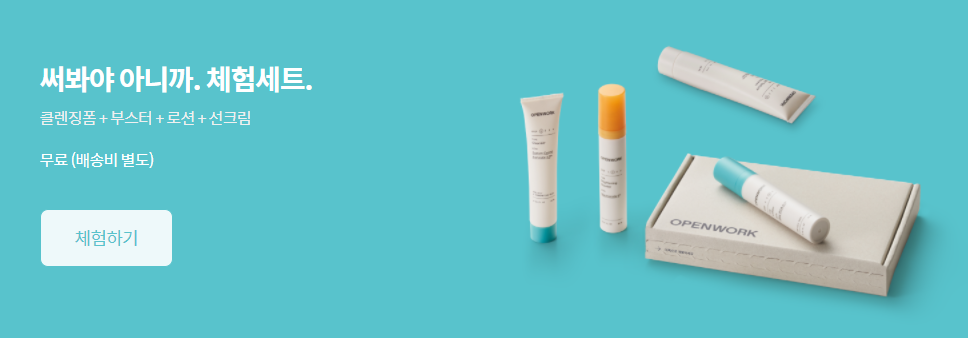 오픈워크는 처음 신청하면 10일 분량의 4종 키트를 무료로 제공해주고 있습니다. 폼클렌징, 부스터, 로션, 선크림으로 구성되어 있는데요. 지성, 건성, 지복합성 등 자신의 피부에 맞게 신청하면 되고 배송비용만 지불하면 됩니다. (정기구독 주문건은 별도의 택배비가 청구되지 않습니다.)