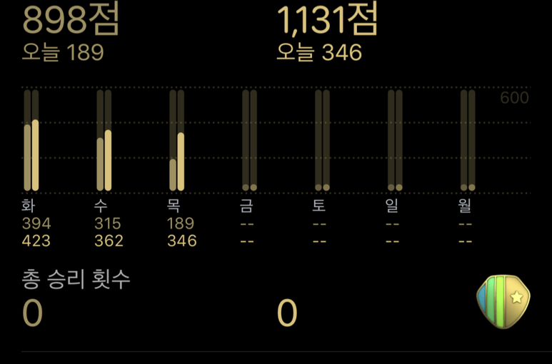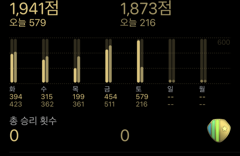 일주일 동안 진행한 겨루기의 결과는 나의 승. 승리하면 영광스러운 배지를 받을 수 있다.